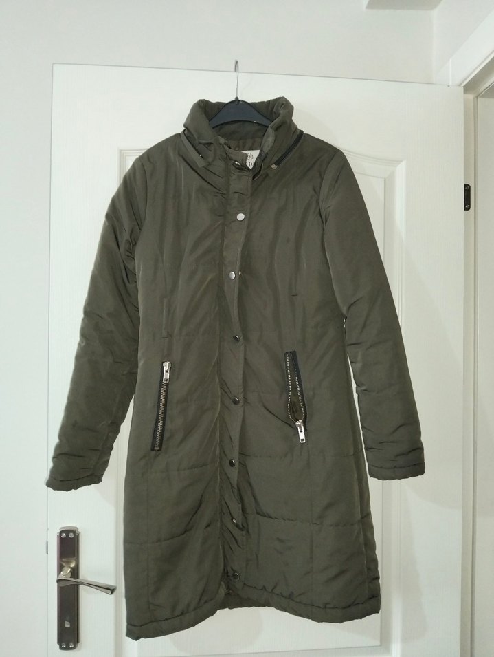 Düğmeli önü ve uzun kollu, sentetik kumaştan yapılmış, sokak tarzı için uygun dar kesim uzun gri ceket.
