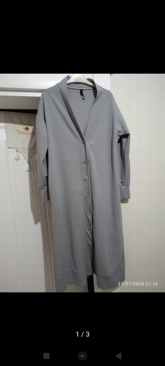 Düğmeli Uzun Gri Kadın hırka tunik