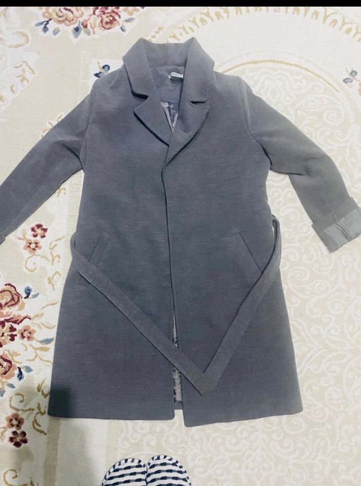 Düğmeli, uzun kesim gri kadın kaban, yumuşak ve sıcak kumaştan, regular fit ve uzun kollu, günlük ve iş stiline uygun. Hiç bir kusuru yoktur