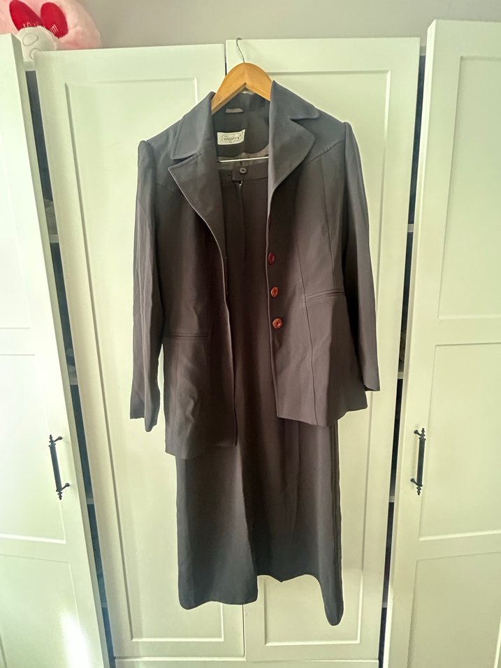 Düğmeli Uzun Gri Kadın Takım Elbise