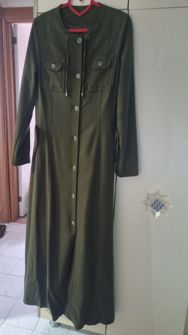 Düğmeli Uzun Haki Kadın Kaban pardösü