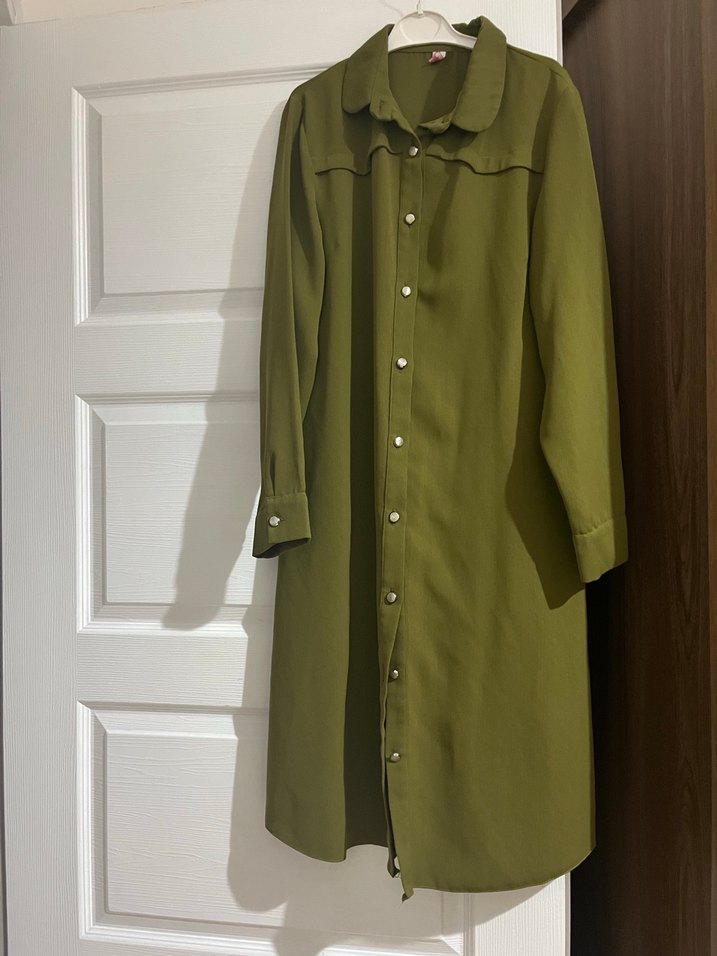 Düğmeli Uzun Haki renk tunik