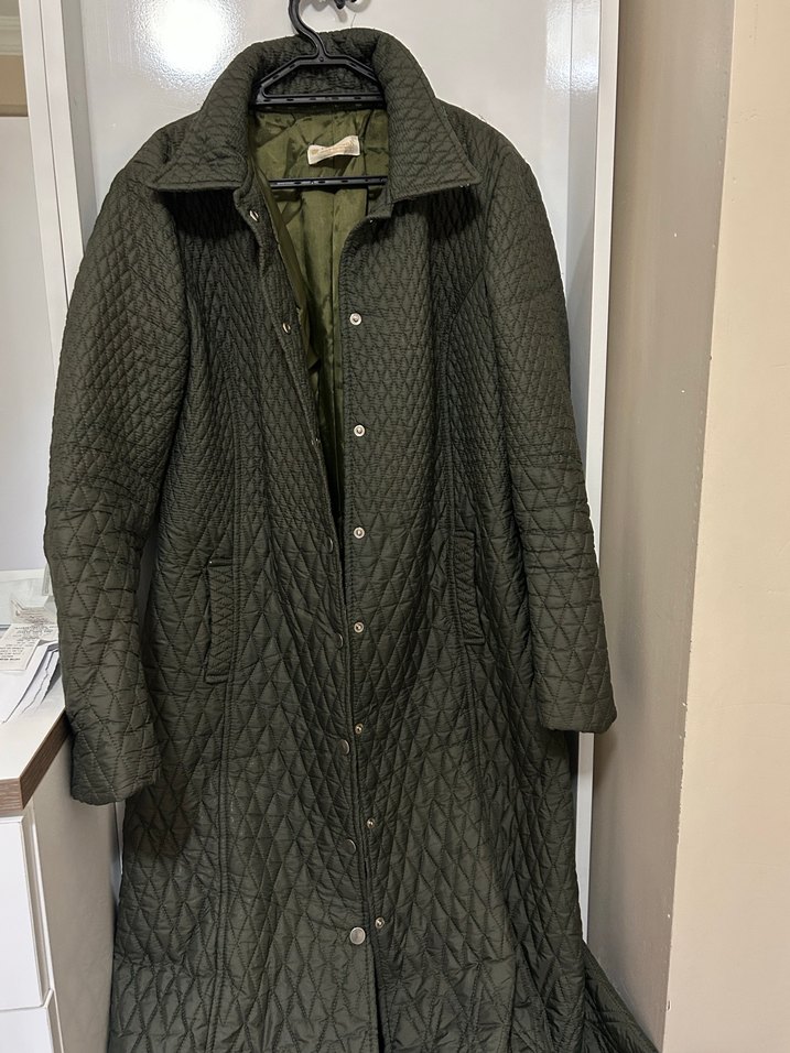 Düğmeli Uzun haki yesil Kadın Ceket