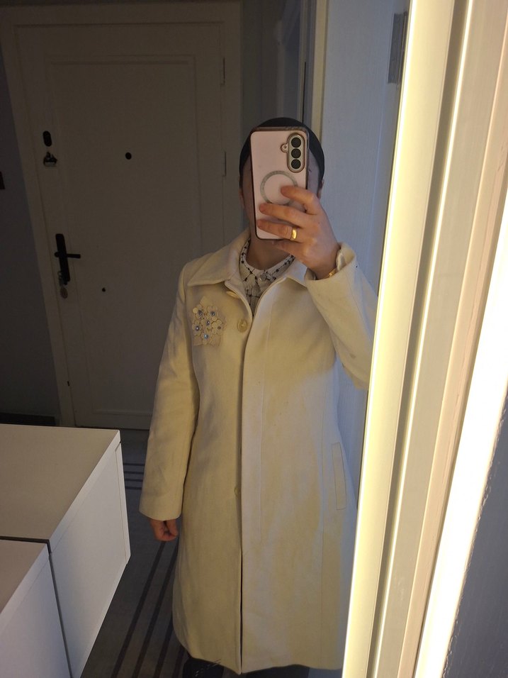Düğmeli, uzun kaban, kesik yaka ve uzun kolludur. çok iyi durumda az kullanıldı