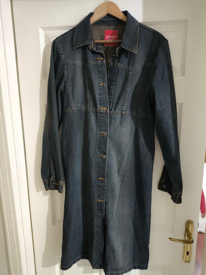 Düğmeli Uzun Kadın Kot Ceket elbise