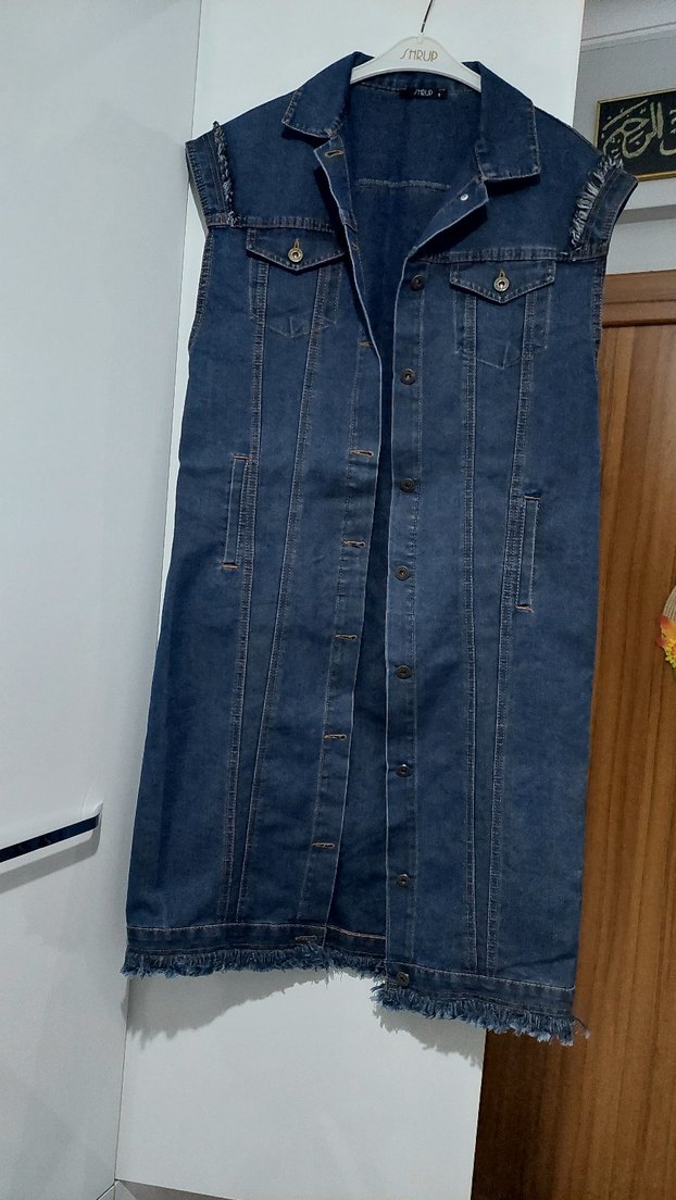 Düğmeli Uzun Kadın Kot Yelek