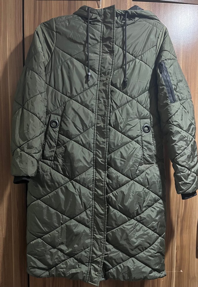 Düğmeli, yakalı uzun mont, sentetik kumaştan, regular kesim ve uzun kollu. Günlük rahat kullanım için uygundur.