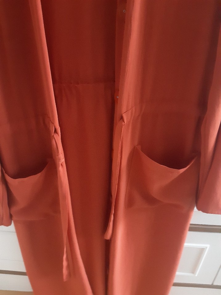 turuncu ipeksi kumaştan uzun ve bol kesim kadın tunik Düğmeli, yakası kesik ve uzun kolludur, minimalist bohem tarzındadır. ✨