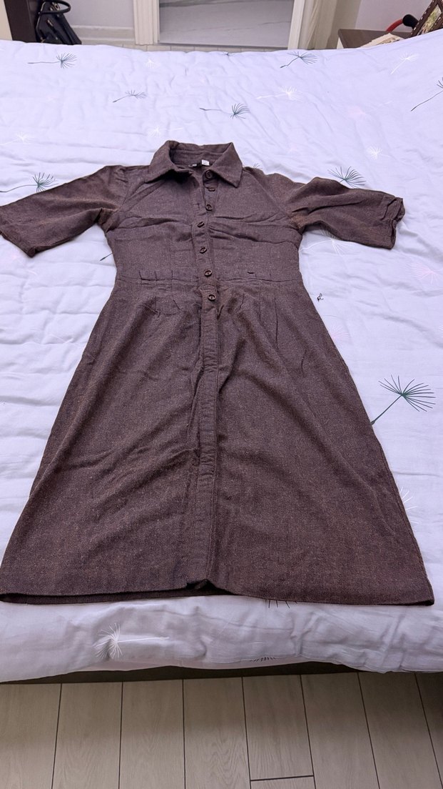 Kahverengi İPEKYOL kadın elbise, düğmeli ön ve kısa kollu. 36 bedendir çok şık dar geldiğinden giyemiyorum