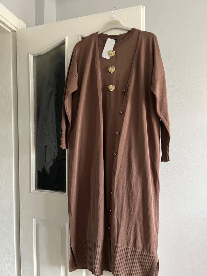 Düğmeli Uzun Kahverengi Kadın Kaban