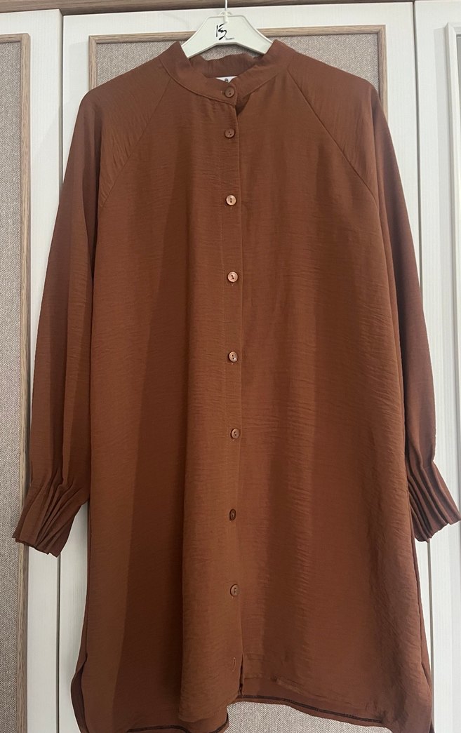 Düğmeli Uzun Kahverengi Kadın Tunik