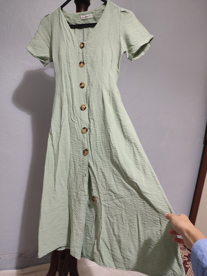 Ürün rengi çağla yeşildir. Beden olarak S bedendir. Az kullanılmıştır. Düğmesinin biri düştü. Pakete koyacağım elde dikebilirsiniz