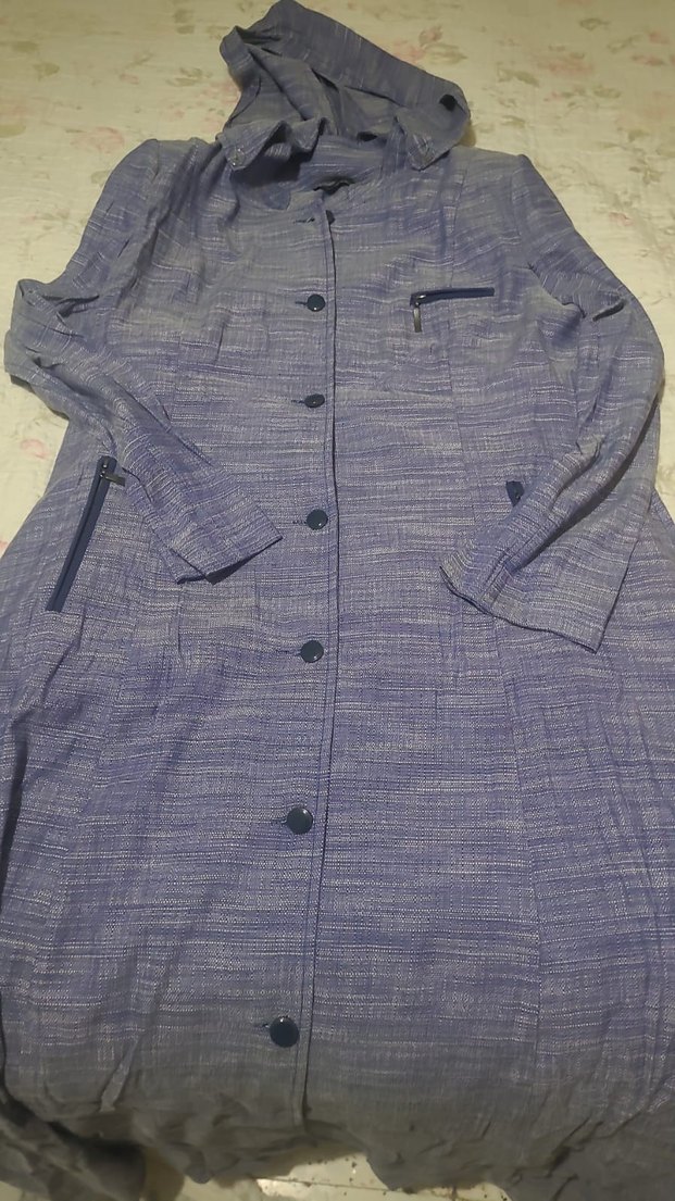 Düğmeli Uzun Keten Kadın Kaban Mor