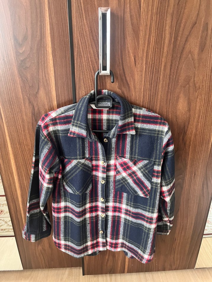 Düğmeli Uzun kollu Kız çocuk oduncu gömleği