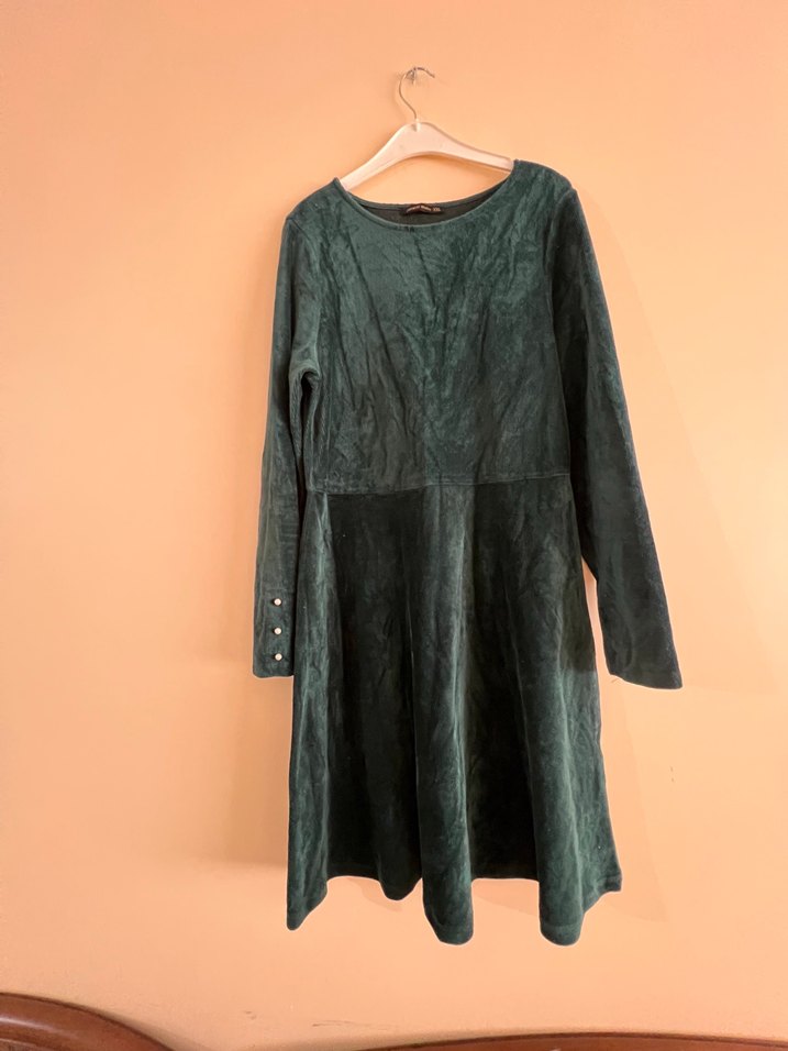 Düğmeli Uzun Kol Yeşil kadife Elbise