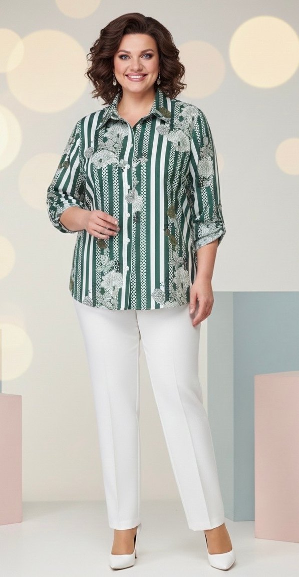 Düğmeli, uzun kollu normal boydadır. Açık yeşil tonlarda tie-dye deseniyle ofis için uygundur.