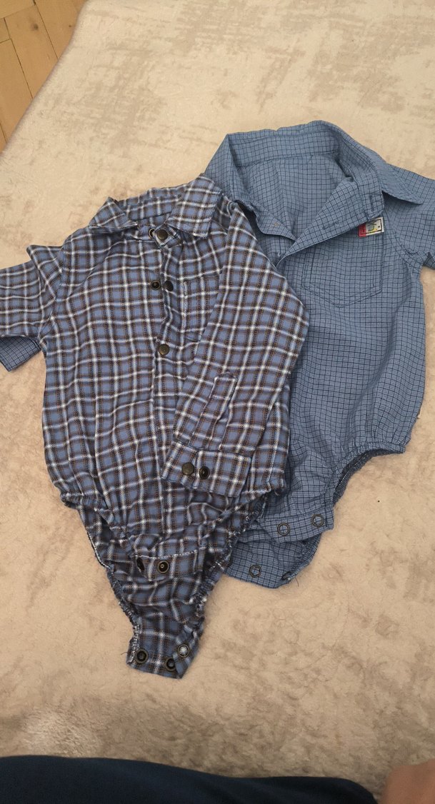 Düğmeli, kısa kollu, yakalı bebek erkek bodyler. Yumuşak pamuklu kumaştan, mavi ve gri tonlarında. Normcore tarzında rahat kullanım için.