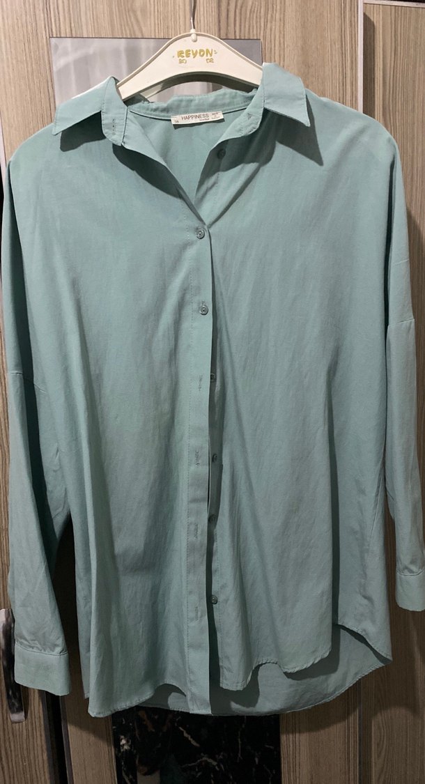 Bej renkli, uzun kollu, düğmeli ve yakalı keten gömlek. Rahat kesimi ve minimalist tarzıyla günlük kullanıma uygun.