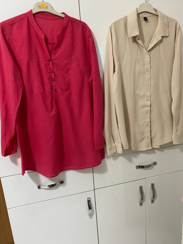 Düğmeli, uzun kollu, bej renk pamuklu kumaştan, yakalı, gömlek. Günlük rahat kullanım için uygundur. İki kol arası 52 boy 70 cm pamuklu bej gömleği alana pembe gömlek hediye dir