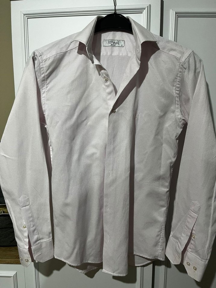 Düğmeli, Uzun Kollu Beyaz Erkek Gömlek