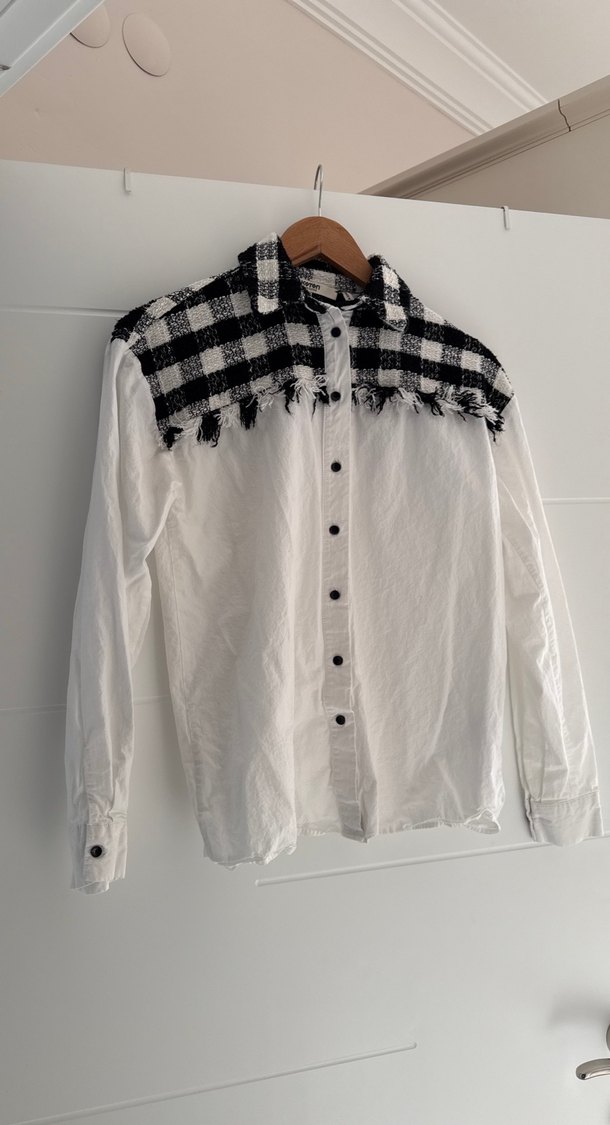 Düğmeli, yakalı ve uzun kollu gömlek. Üst kısmında siyah-beyaz kare desenli ve pamuklu dokusu ile rahat bir kesime sahiptir. Günlük kullanım için uygundur. 34-36 beden