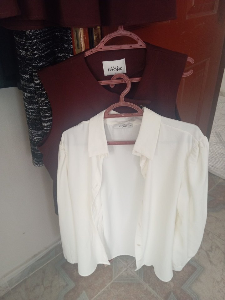 Düğmeli, uzun kollu, beyaz ipek gömlek