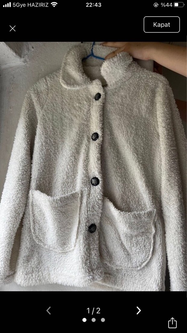 Düğmeli, uzun kollu ve cep detaylı beyaz kadın ceket, yumuşak ve rahat dokusuyla günlük sokak stiline uygundur. Defosu vardır dikilirse olur