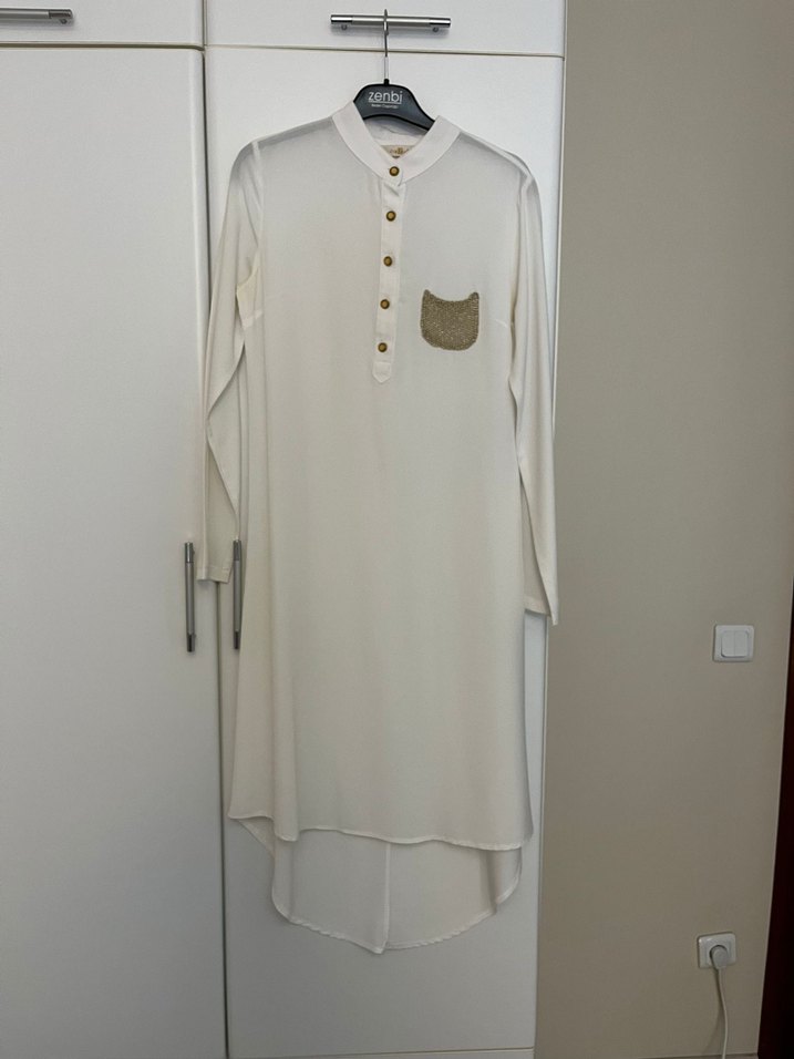 Düğmeli Uzun Kollu Beyaz Kadın Tunik