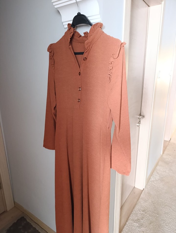 Düğmeli, Uzun Kollu, Bol Kesim Kadın Elbise