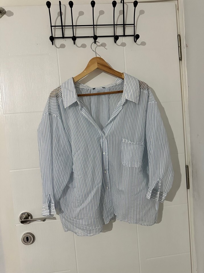 Yakalı yarım kollu bol kesim gömlek. Günlük rahat sokak stili için uygundur. Transparan bir gömlek, bol kesim. Etiketi kesmişim ama trendyoldan aldım diye hatırlıyorum