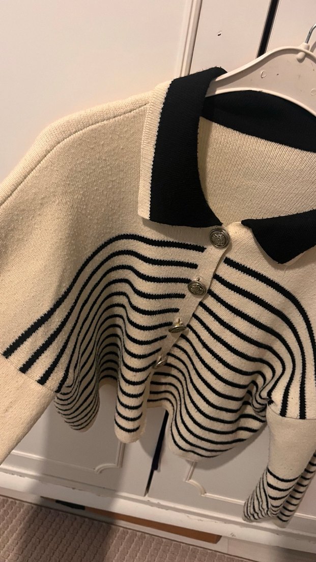 Düğmeli, Uzun Kollu, Çizgili Kadın Kazak