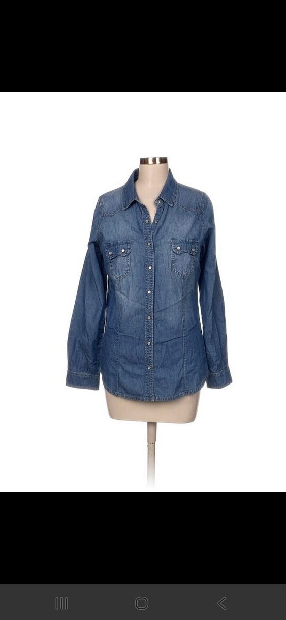 Mavi denim gömlek, düğmeli ön, uzun kollu ve kesik yaka detaylarına sahiptir. Salaş kesim ve normal boyda, günlük sokak tarzına uygundur. Göğüs cepleri bulunur ve desensizdir. göğüs 45 boy 63 cm