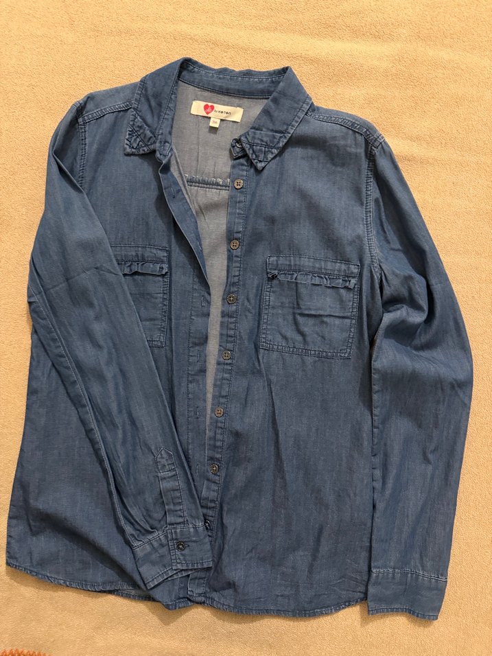 Düğmeli Uzun Kollu Denim Gömlek