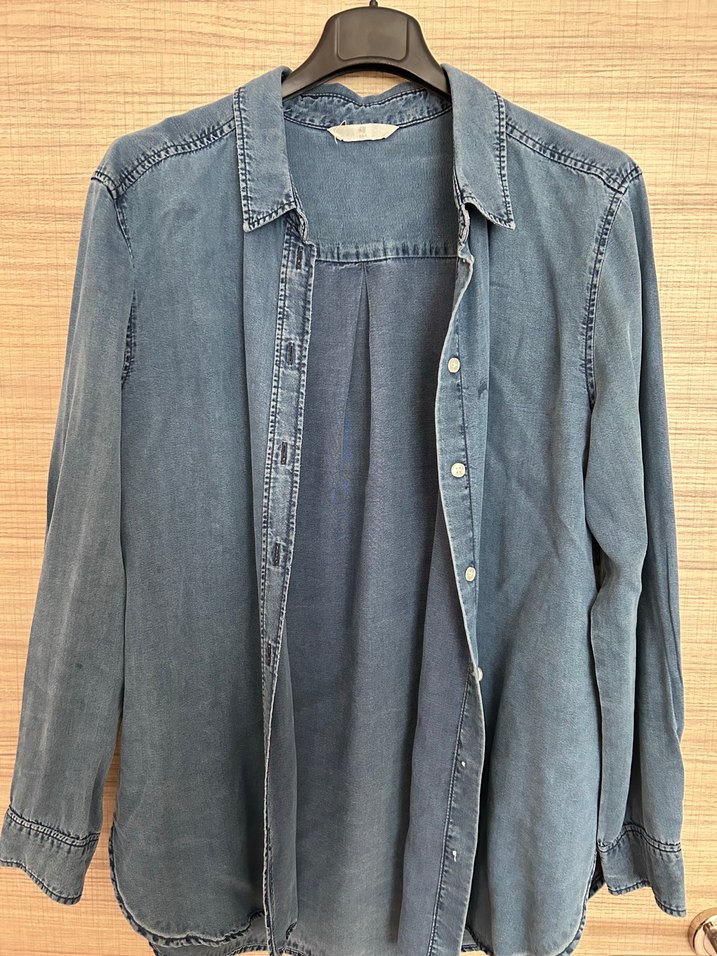 Bu düğmeli, uzun kollu denim gömlek, rahat kesimi ve çentikli yaka detayıyla günlük kullanıma uygun normcore tarzda mavi renktedir.