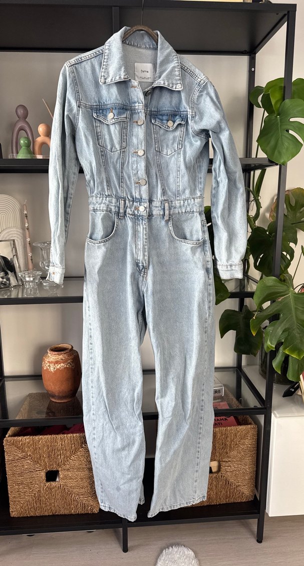 Düğmeli Uzun Kollu Denim Tulum