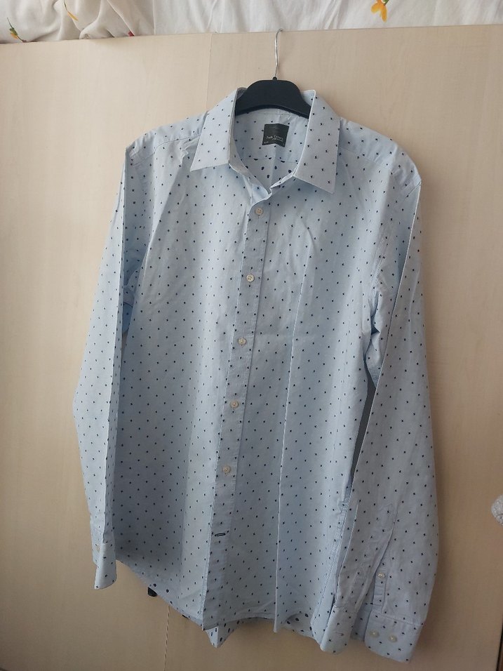 Erkek gömleği, düğmeli ön, uzun kollu ve kesik yaka detaylarına sahiptir. Yumuşak pamuk kumaştan yapılmış, regular fit ve normal boydadır. Açık mavi renk, ince desenlidir ve günlük kullanıma uygundur. Panda Coton marka