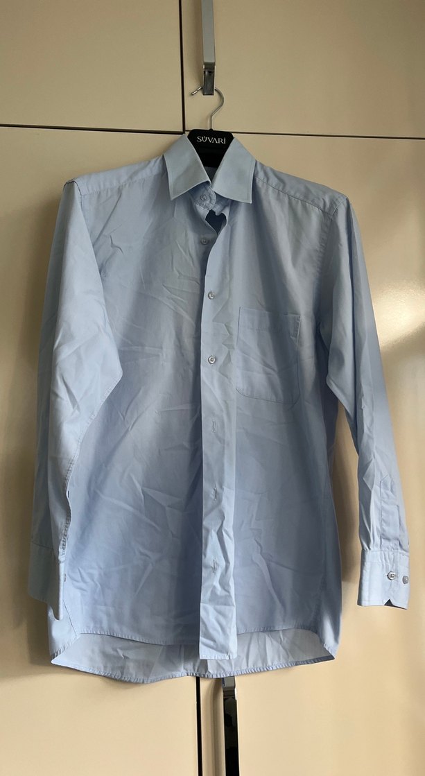 Düğmeli, uzun kollu, keten kumaştan yapılmış bu erkek gömleği, klasik yakalı ve düz mavi renkte olup ofis için uygundur. Regular fit kesime sahiptir.