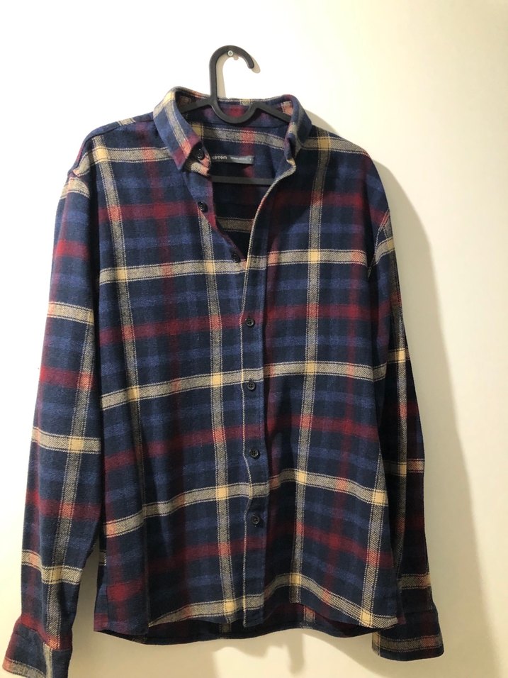 Düğmeli, uzun kollu ve yakalı erkek gömleği. Rahat kesim ve normal boyda, yumuşak ve sıcak kumaştan yapılmış koyu renkli çok renkli oduncu deseniyle gündelik sokak stiline uygun.