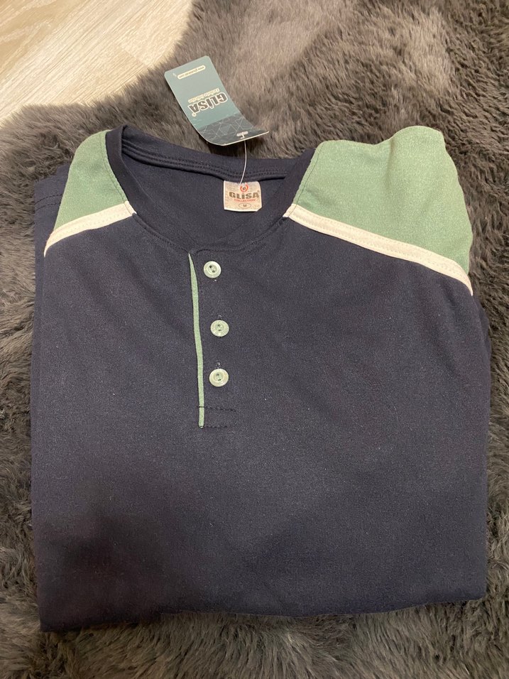 Erkek pijama , uzun kollu, düğmeli ve yuvarlak yaka detaylarıyla. Koyu yeşil ve lacivert renklerde, rahat ve salaş kesimlidir.