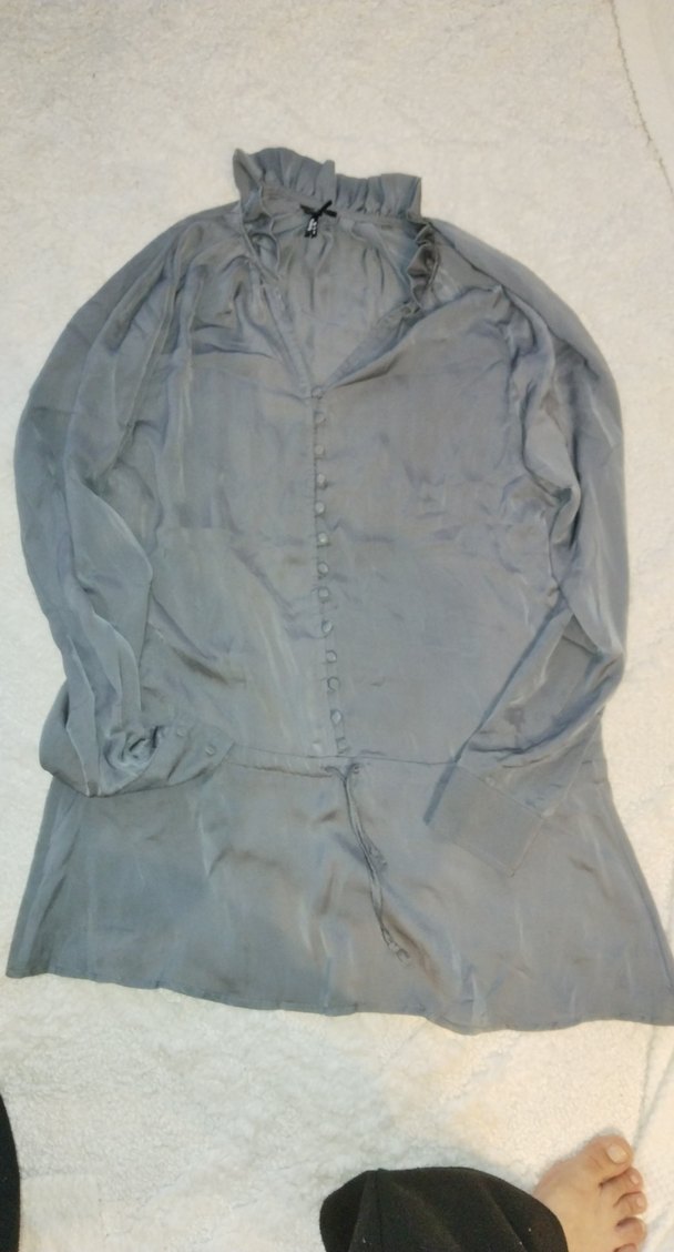 Düğmeli Uzun Kollu Gri Bluz