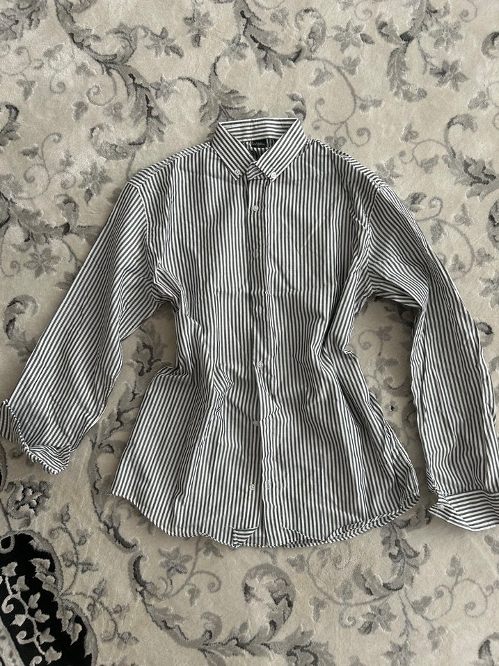 Düğmeli Uzun Kollu Gri Çizgili Kadın Gömlek