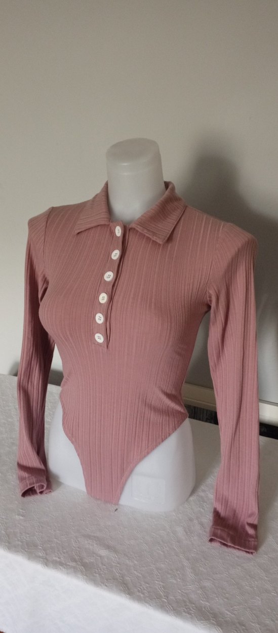 Düğmeli, Uzun Kollu,gül kurusu Bluz