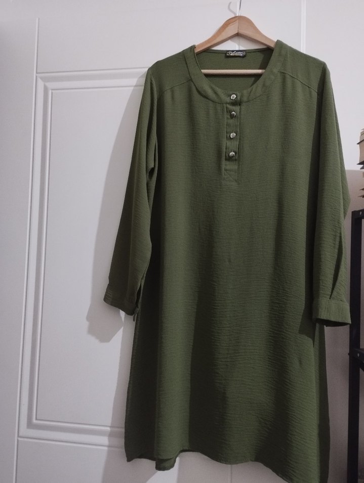 Düğmeli Uzun Kollu Haki ayrobin Tunik
