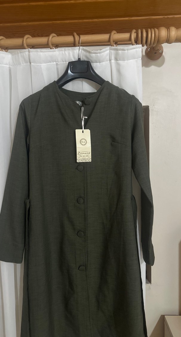 Düğmeli Uzun Kollu haki Kadın Tunik