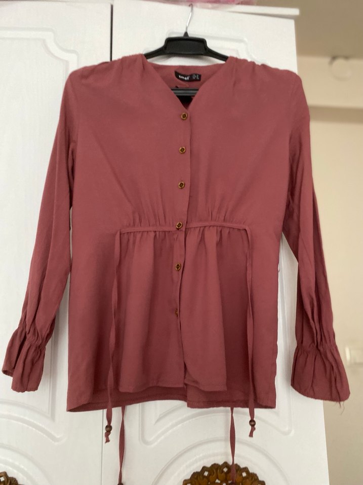Düğmeli, uzun kollu, V yakalı ve midi uzunlukta pembe hamile bluzu. Rahat kesim ve yumuşak sentetik kumaştan üretilmiştir. Günlük rahat kullanıma uygundur.