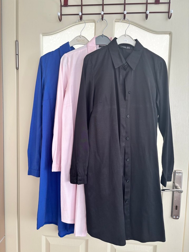TEK GÖMLEK FİYATI İKİLİ ÜÇLÜ ALIMDA İNDİRİM UYGULANACAK Düğmeli ön kısmı ve yakalı tasarımıyla, ofis kullanımı için uygun, ipeksi kumaştan uzun kollu ve uzun boy hamile gömleği. Farklı koyu renk seçenekleri mevcuttur.