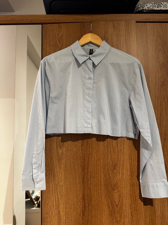 Kadın gömlek, düğmeli ön kapama ve uzun kolludur. Normal midi boyda ve ofis stiline uygundur. Bebe mavisi