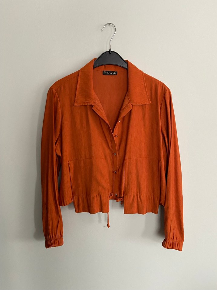 Düğmeli, uzun kollu ve yakalı kadın gömlek. Orta uzunlukta, günlük kullanım için uygundur. Hiç bir kusuru yok bir kez kullanıldı