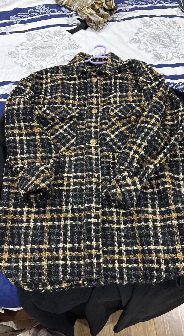 Düğmeli ön cep detaylı, uzun kollu, koyu kahverengi kare desenli kadın gömleği. Yumuşak dokulu, midi boy, rahat kesim ve sokak stili için uygun.