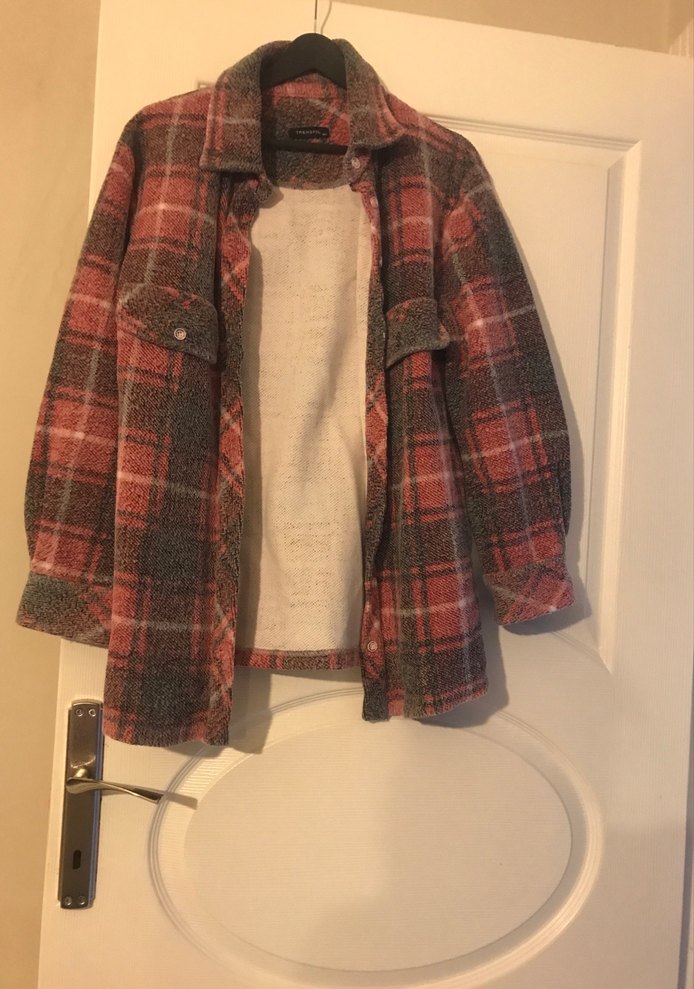 Yumuşak yün kumaştan, düğmeli ve uzun kollu, bol kesim kadın gömleği. Kahverengi batik desenli, günlük sokak tarzı için uygundur.